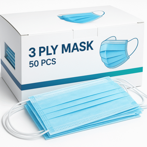 3 Ply Mask (50 Pcs) is a high-quality disposable protective face mask designed to offer effective protection against dust, pollution, airborne particles, droplets, bacteria, and general contaminants. Made with three layers of non-woven fabric, the mask ensures superior filtration while allowing easy breathing.