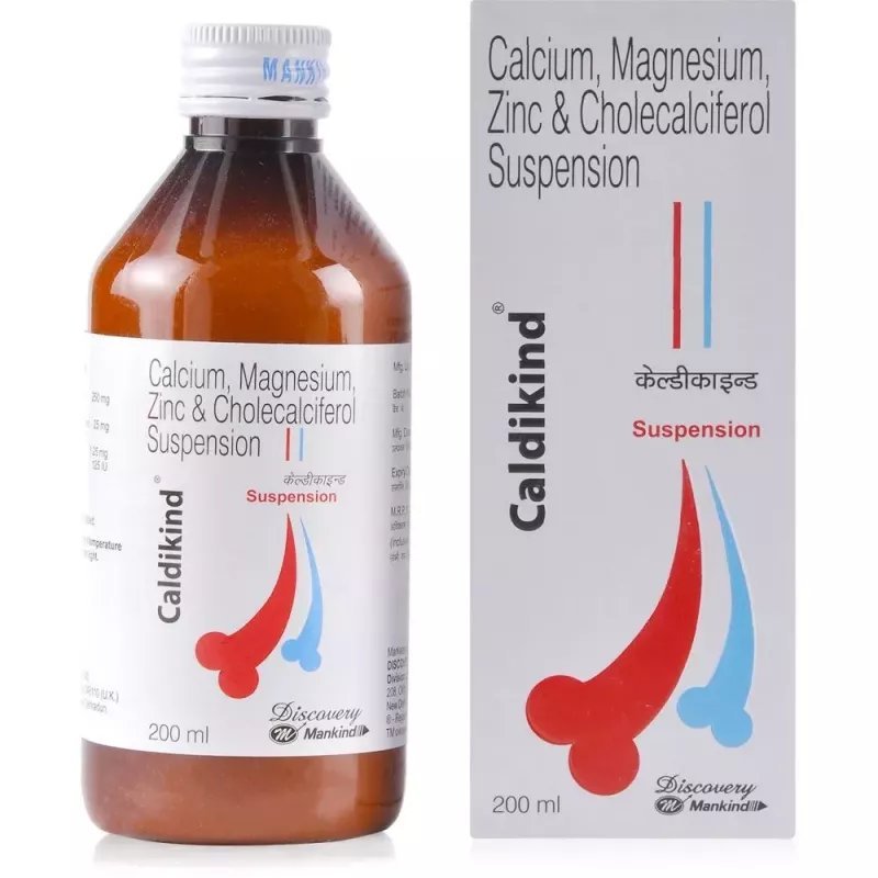 Caldikind Suspension is a dietary supplement consisting of calcium, vitamin D3, magnesium, and zinc, which support bone health by increasing bone strength and absorption of other nutrients in the body. The tablet helps reduce bone ailments and minimises the risk of bone fractures.