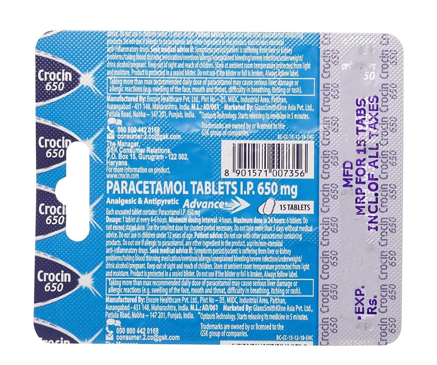 - The Optizorb technology used in Crocin 650 Advance Tablet is designed to provide fast and effective relief from pain and fever